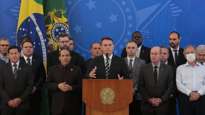O presidente Jair Bolsonaro fez um pronunciamento na tarde desta sexta-feira (24), no Palácio do Planalto, para rebater as acusações feitas pelo ex-ministro Sergio Moro, que anunciou sua demissão do Ministério da Justiça mais cedo. Acompanhado de seus ministros, Bolsonaro falou durante 46 minutos e negou que tenha pedido para o então ministro interferir em investigações da Polícia Federal (PF).