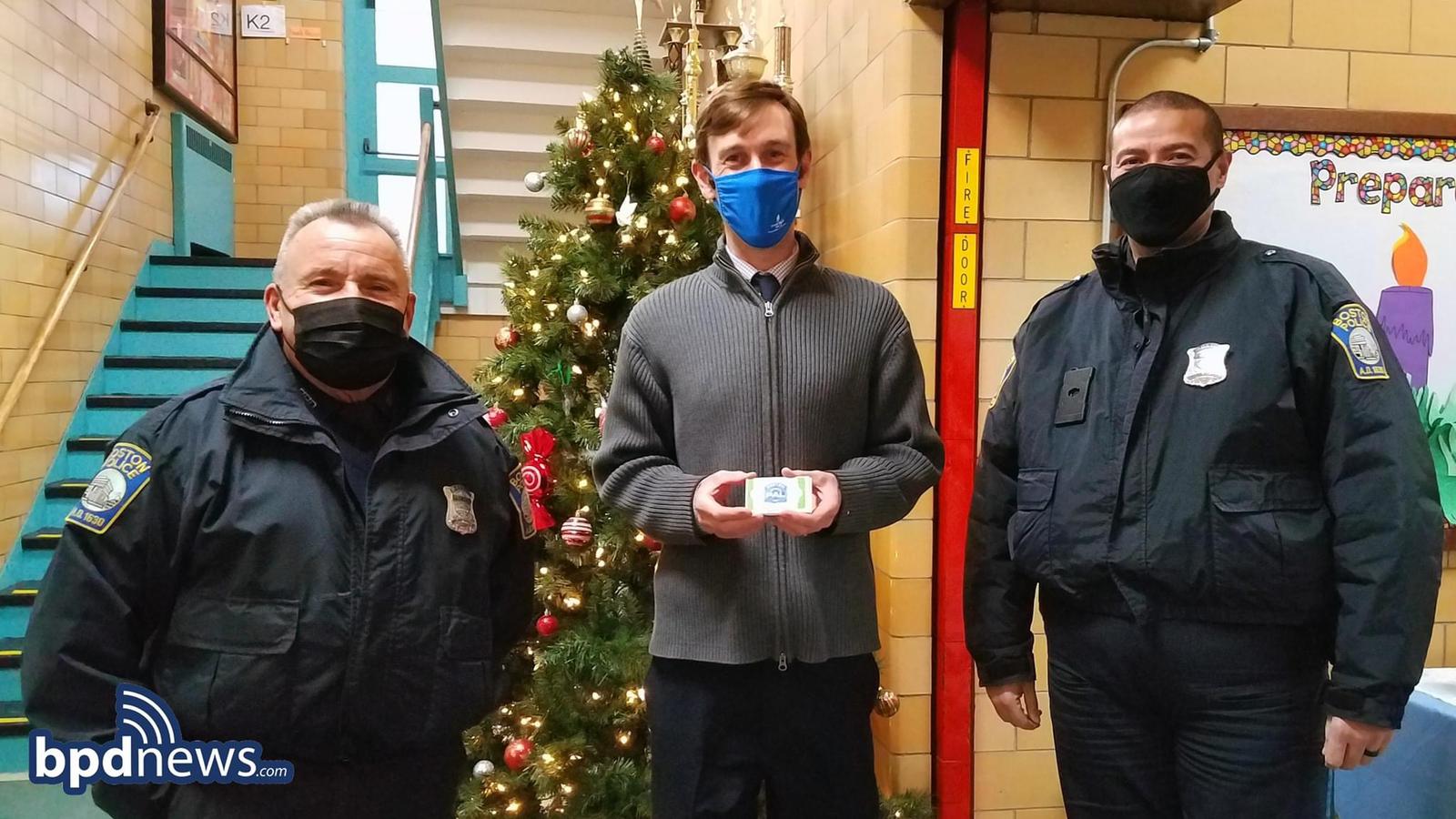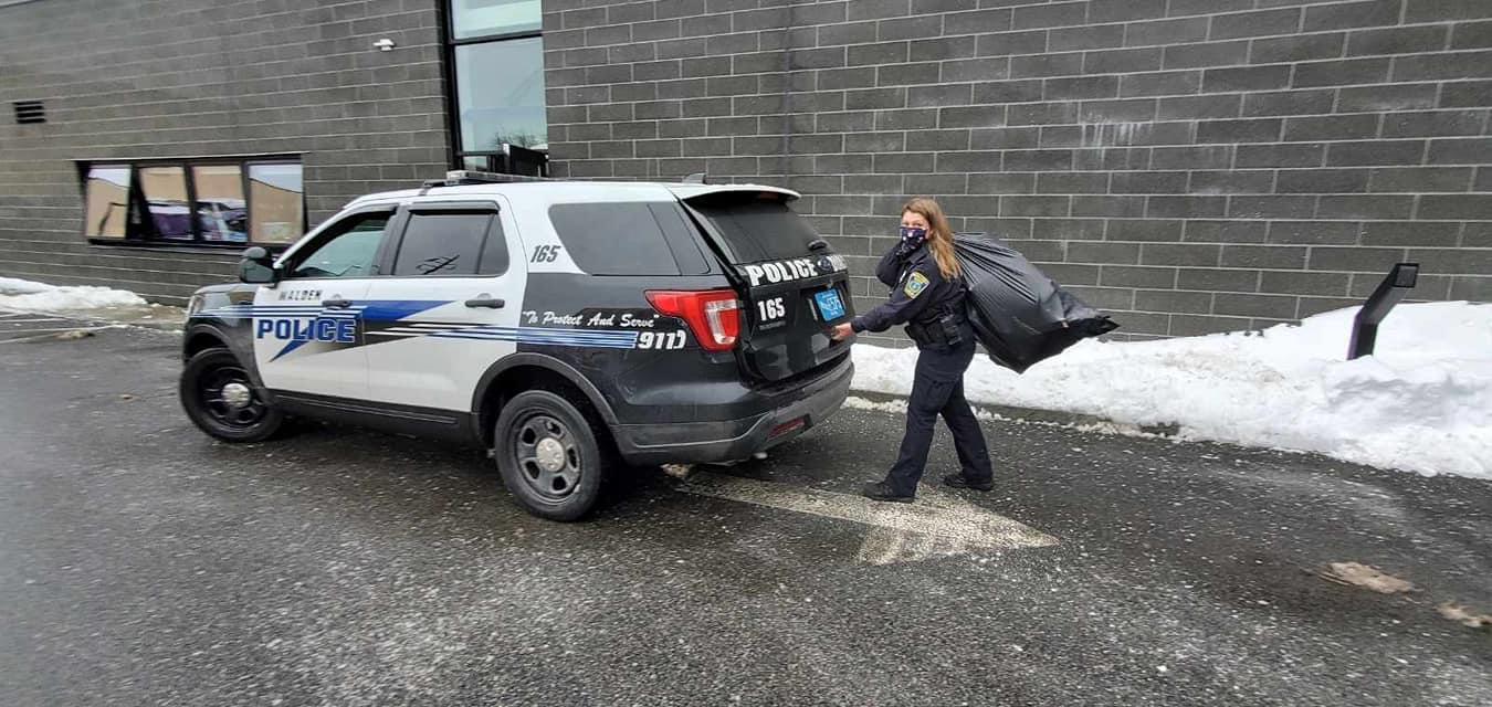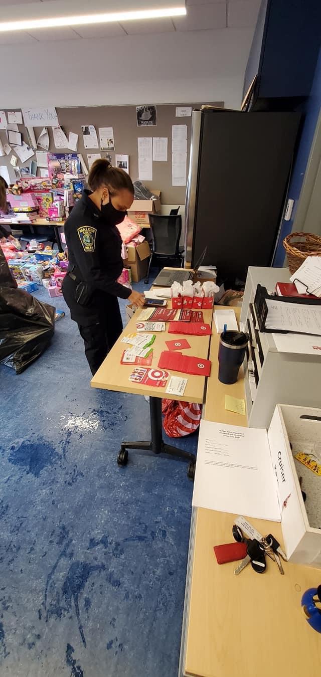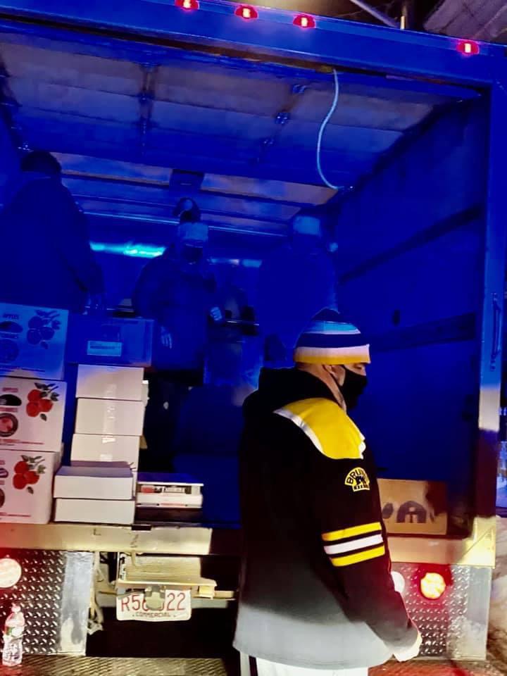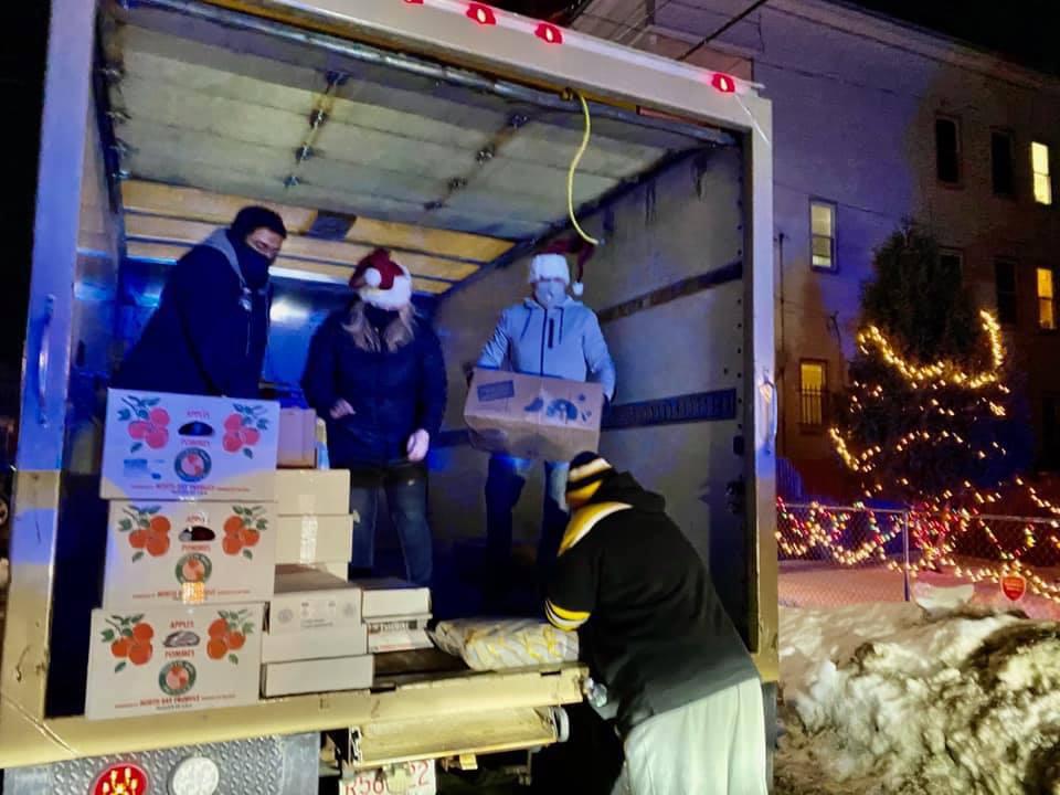 Organizado pela Associação Profissional e Empresarial de West Roxbury, os oficiais embalaram seus veículos com refeições de Natal fornecidas pelo supermercado Roche Brothers e foram entregues a famílias necessitadas em todos os bairros de West Roxbury e Roslindale.