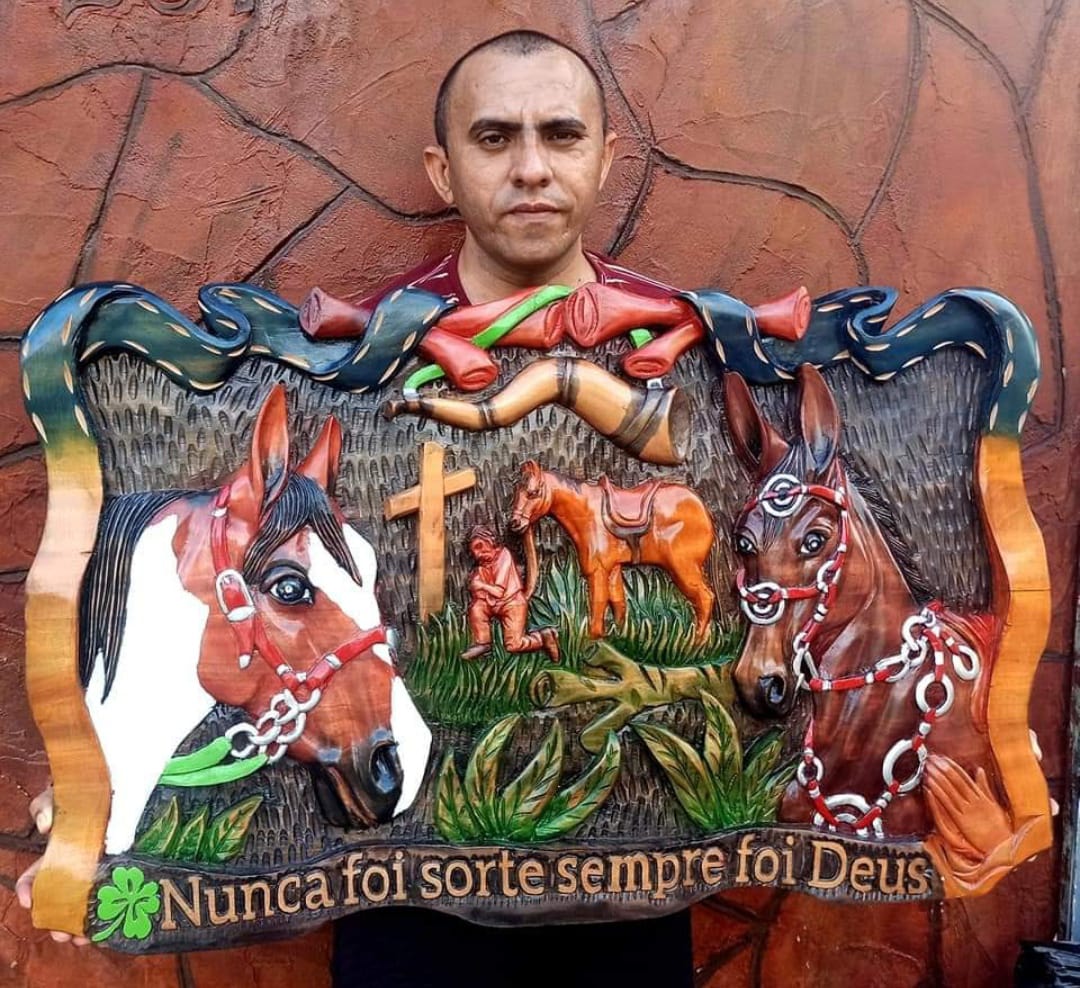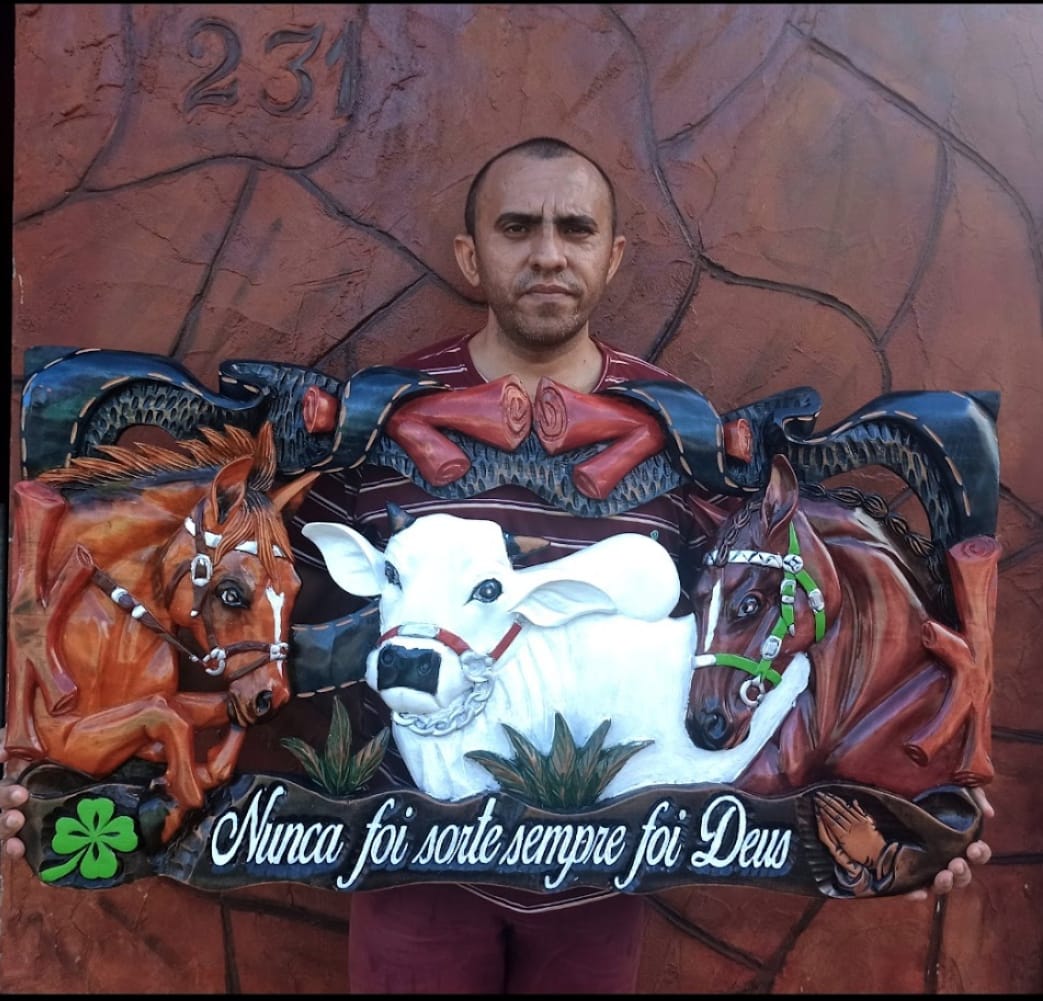 E quem conhece o trabalho de Francione sabe da relação especial que ele tem com o artesanato. Seu talento é extenso, e suas obras são reproduzidas na madeira, logomarcas, foto de pessoas, placa para sítios, fazendas, time de futebol, logos de empresas etc.