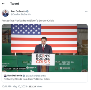 “Estamos nos preparando para tempos turbulentos pela frente, quando você tem um presidente que faz vista grossa para o que está acontecendo na fronteira”, disse DeSantis. “Acho que ele nem visitou a fronteira durante todo o tempo em que esteve no cargo.” Contradizendo o governador, o presidente Biden visitou a fronteira sul em El Paso em janeiro.