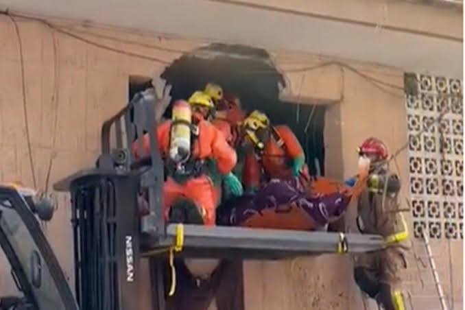 Na quarta-feira, os bombeiros realizaram o resgate de um homem de 48 anos, com mais de 250 quilos, que estava preso entre o lixo em um prédio em El Prat de Llobregat, na província de Barcelona, Espanha.