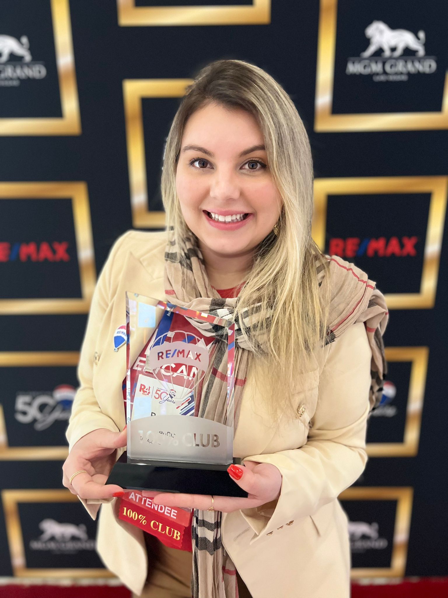 Ano passado após 1 ano e meio de trabalho na área da corretagem, ela já conseguiu bater a comissão de 100 mil dólares de comissão anual. E recebeu uma premiação em Las Vegas.