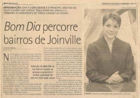 Lá, chefiei e apresentei também o jornal matinal chamado Bom Dia Santa Catarina. Eu gostava muito desse telejornal, pois levava até as famílias as primeiras notícias da manhã. Economia, finanças domésticas, trânsito, previsão do tempo e outros acontecimentos. Foi um trabalho de valorização da comunidade. Como Âncora e Editora Chefe do BDSC criei a Série Especial Bom Dia no Seu Bairro, onde nos aproximamos da comunidade destacando os acontecimentos e feitos das pessoas que faziam a cidade. Por este projeto, a emissora recebeu um prêmio importante na época, o que muito me orgulhou. Neste período, eu fazia reportagens também para telejornais de rede nacional da Rede Globo como Jornal Hoje, Bom Dia Brasil, Jornal da Globo, além de participações em outros programas como Ana Maria Braga, e Globo Esporte, por exemplo.