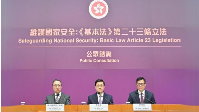 O pacote inclui proibições de ameaças à segurança nacional, colaboração com forças externas e conluio para publicar declarações enganosas. Há receios de que a legislação possa agravar a repressão na cidade financeira.