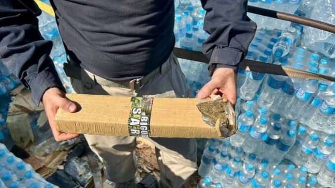 O veículo foi interceptado na BR-101, em Palhoça (SC). Durante a vistoria, os agentes encontraram um fundo falso que ocupava aproximadamente metade da capacidade do semirreboque. No compartimento, havia diversos tabletes de maconha escondidos sob itens de doação, como água, alimentos, roupas e ração para animais. No total, foram apreendidos 4.080 quilos de maconha, conforme informações da PRF.