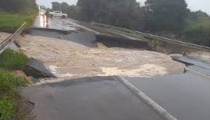 Imagem mostra estrada no Rio Grande do Sul é bloqueada depois de ceder durante temporal. Foto: Reprodução.