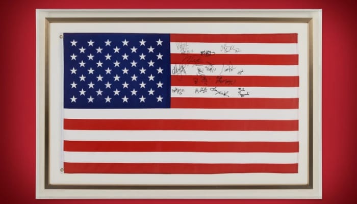 Durante a premiação, Jordan cobriu estrategicamente o logotipo da Reebok em sua jaqueta com a bandeira. O gesto, feito para ocultar a marca concorrente da Nike, com quem ele tinha um contrato vitalício desde 1984, representou uma mensagem sobre sua lealdade contratual. A bandeira leiloada foi assinada pelos jogadores do Dream Team, equipe que conquistou o ouro olímpico com uma campanha invicta e performances dominantes, incluindo uma vitória final sobre a Croácia por 117 a 85.