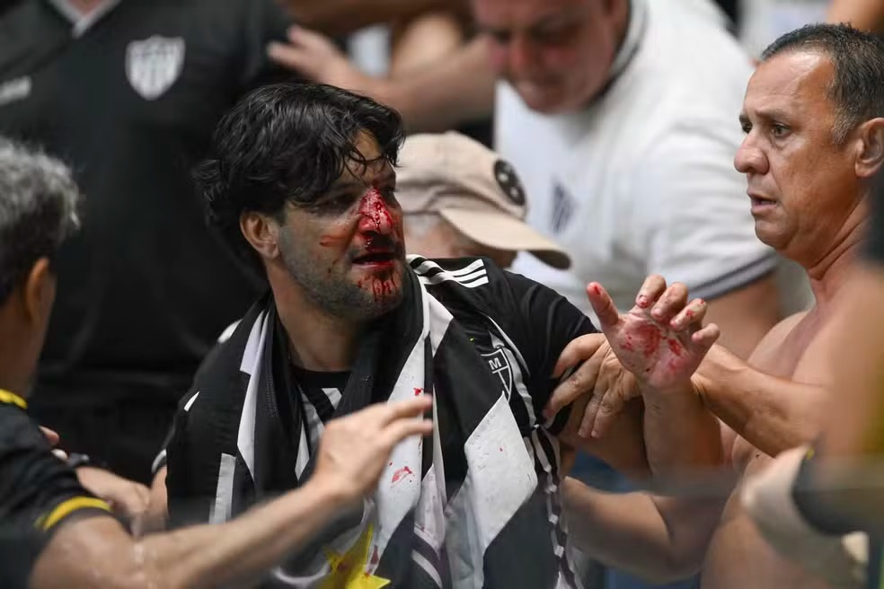 Torcedor do Atlético-MG ferido durante jogo na final da Copa do Brasil com o Flamengo. Foto: Getty Images.