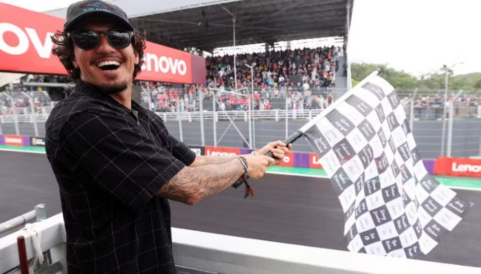 Gabriel Medina dá a bandeirada no GP de São Paulo. Foto: Lars Baron – Formula 1/Formula 1 via Getty Images.