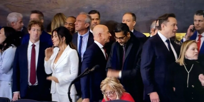 Chefes de gigantes da tecnologia comparecem ao evento de posse de Donald Trump, destacando cooperação entre governo e setor privado.