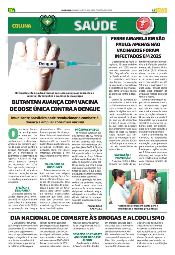 A coluna “Saúde” é dedicada a compartilhar informações sobre saúde, destacando descobertas científicas, novidades na área médica e alertas sobre novas doenças e outros assuntos essenciais para o bem-estar.