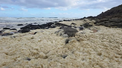 Em praias no sul da Austrália, espuma misteriosa está causando visão turva, coceira nos olhos, tosse e dificuldades respiratórias em surfistas.
