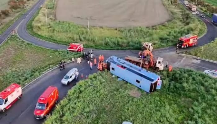 Na madrugada desta terça-feira (8), um grave acidente envolvendo um ônibus causou a morte de ao menos 11 pessoas e deixou 16 feridas em Araguari, no interior de Minas Gerais. O veículo, que transportava 54 passageiros, capotou por volta das 3h40 na rodovia MG-223, próximo ao trevo de Queixinho, no km 223, sentido Tupaciguara.