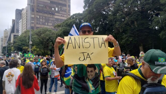Ele também demonstrou indignação com as pesadas penas aplicadas aos participantes dos atos de 8 de janeiro, considerando-as desproporcionais: “A luta é pela liberdade dessas pobres pessoas, que estão condenadas a penas de até 17 anos de cadeia”, disse.
