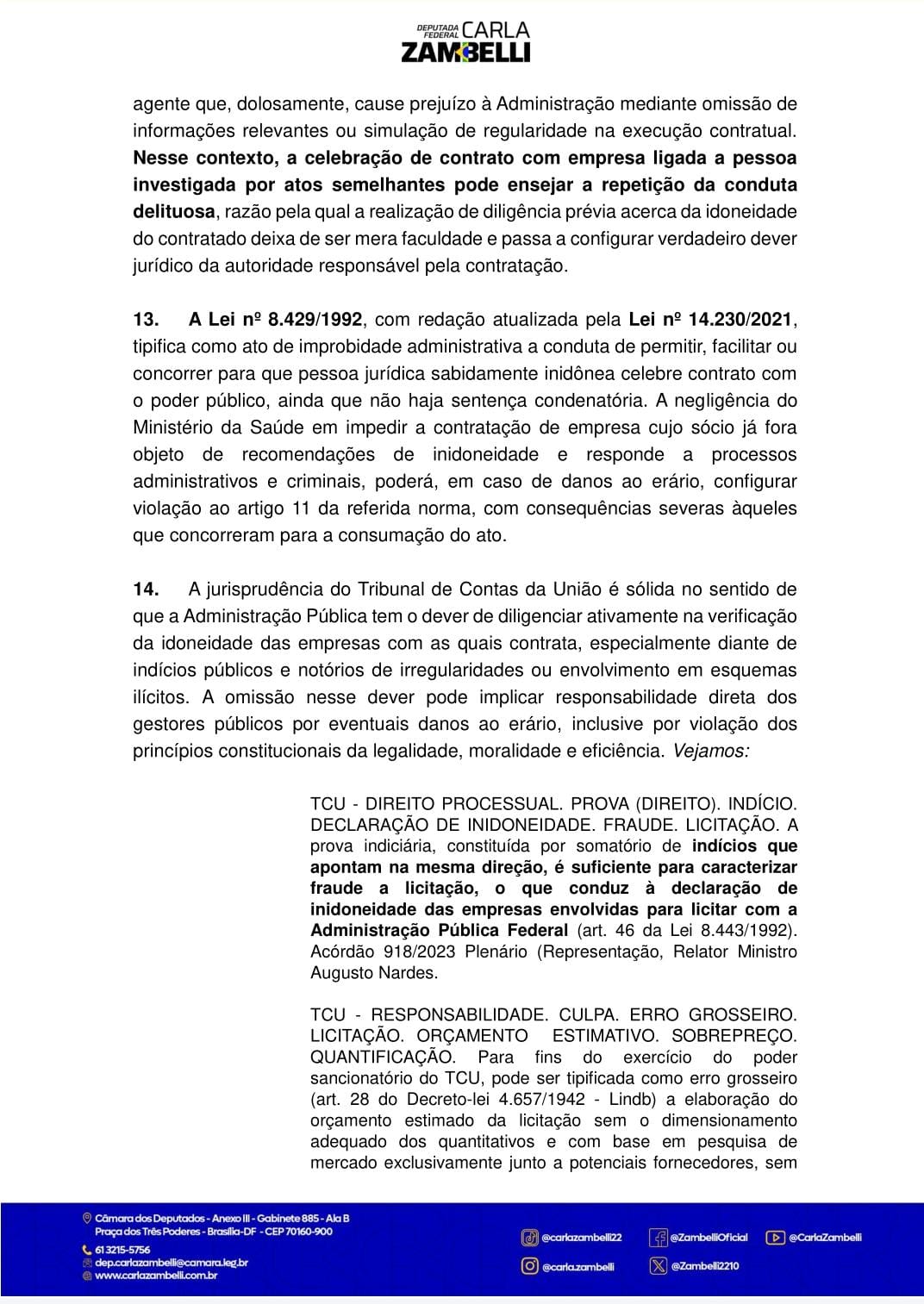 Segundo Zambelli, desde 2023, a Voare firmou 17 contratos com o governo federal, todos com o Ministério da Saúde, somando mais de R$ 164 milhões. Ela acusa o governo de possível favorecimento à empresa e omissão quanto à verificação da idoneidade dos envolvidos.