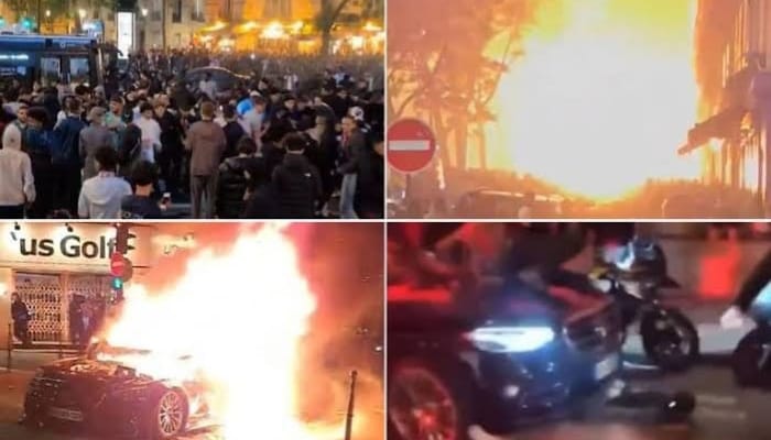Polícia parisiense dispersa torcedores do PSG na Champs-Élysées. Foto: Reprodução.
