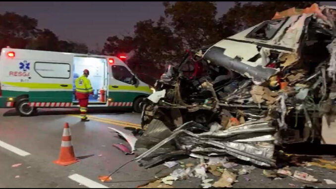 O passageiro que estava na cabine do caminhão sobreviveu, mas foi encontrado com ferimentos graves e permanece sob cuidados médicos intensivos.