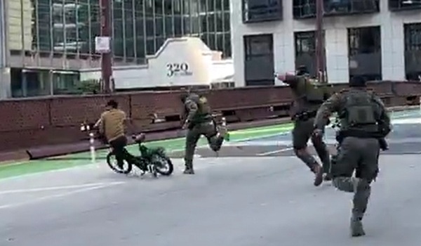 Viralizou nas redes sociais um vídeo que mostra cerca de 10 agentes do Serviço de Imigração e Alfândega dos EUA (ICE) tentando capturar, sem sucesso, um entregador de comida durante ação Chicago nesta segunda-feira (29). As imagens mostram o homem se desvencilhando dos policiais e escapando em uma bicicleta.