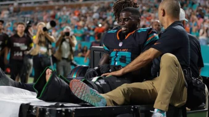 Wide receiver do Miami Dolphins passa por cirurgia após luxação no joelho e rompimento de ligamentos na vitória sobre o New York Jets; futuro na temporada 2026 ainda é incerto