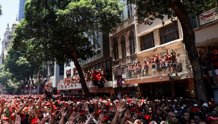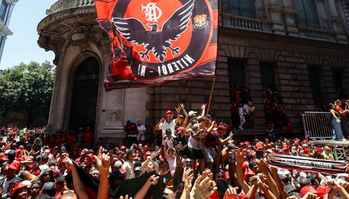 Uma multidão de torcedores do Flamengo tomou as ruas do Centro do Rio de Janeiro (RJ) na manhã deste domingo (30) para receber a delegação do clube, que desembarcou no Aeroporto Internacional Tom Jobim por volta das 10h, após vencer o Palmeiras por 1 a 0 em Lima e conquistar a Copa Libertadores de 2025.