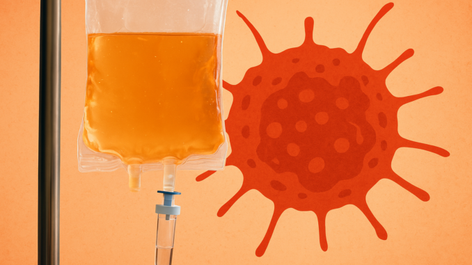 Ele é aplicado por infusão intravenosa — semelhante a uma quimioterapia — a cada três ou quatro semanas, conforme a combinação prescrita pelo médico.