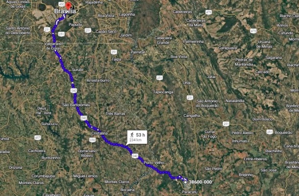 A jornada começou no município de Paracatu, no noroeste de Minas Gerais, próximo à divisa com Goiás. O trajeto será feito majoritariamente pela BR-040 e deve durar cerca de sete dias. Para o primeiro dia, a estimativa divulgada pelo próprio deputado era de um percurso de aproximadamente 40 quilômetros.
