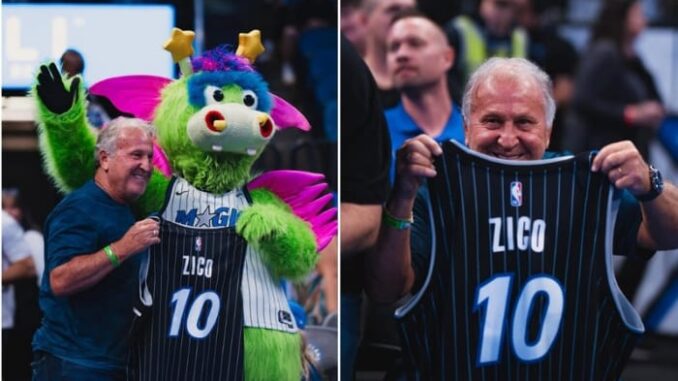 Convidado especial da franquia, Zico recebeu das mãos da mascote Stuff uma camisa do Magic com seu nome e o tradicional número 10. A homenagem foi registrada e divulgada nas redes sociais do time da NBA, com direito a interação descontraída entre o Galinho e o mascote.
