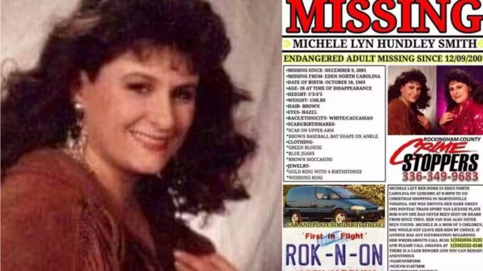 Michele Hundley Smith, então com 38 anos, saiu de sua casa em Eden (Carolina do Norte) em dezembro de 2001 para fazer compras de Natal e nunca mais voltou. Na época, ela deixou três filhos — com 19, 14 e 7 anos — e mobilizou autoridades locais por décadas sem pistas concretas sobre seu paradeiro.