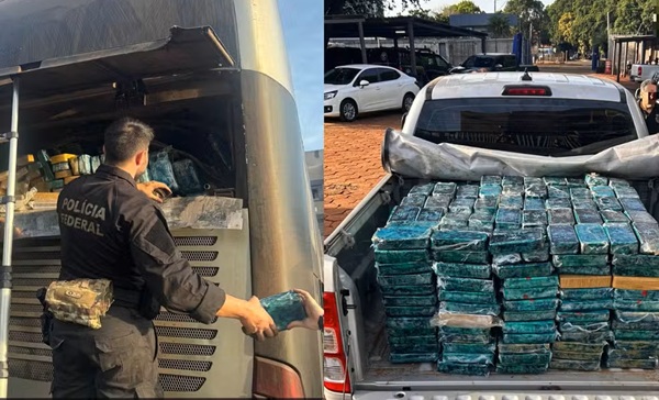 De acordo com a PF, após a abordagem o motorista e os passageiros deram informações contraditórias. Desconfiados, os agentes decidiram fazer uma vistoria detalhada no veículo coletivo e encontraram no bagageiro um compartimento oculto com a grande quantidade de entorpecente.
