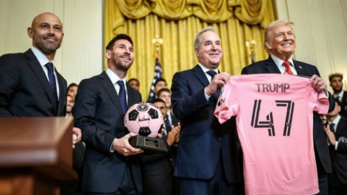 O presidente dos Estados Unidos, Donald Trump, recebeu na noite de quarta-feira (5) o elenco do Inter Miami CF na Casa Branca, em Washington, D.C..